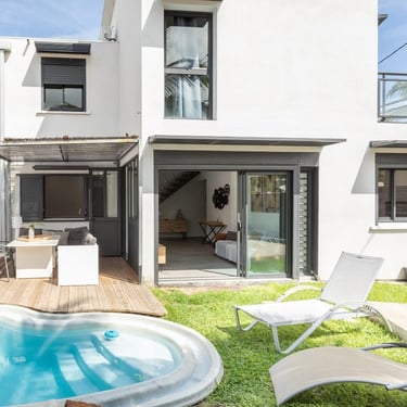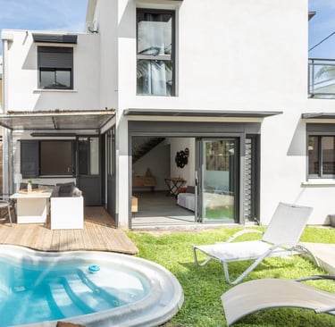 Dès votre arrivée, laissez-vous séduire par l’élégance de notre villa entièrement meublée et équipée. Le séjour, baigné de lumière, s’ouvre sur un petit jardin, promesse de moments de quiétude. La terrasse, véritable cocon de bien-être, vous attend pour des instants privilégiés au bord de la piscine, confortablement installé sur les transats.